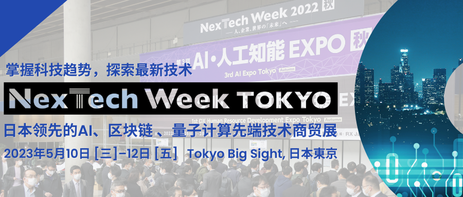 2023/04/27加入您的商務(wù)行程—邀請(qǐng)參訪(fǎng)日本先端技術(shù)盛宴!(5月10-12日@東京)文末掃碼申請(qǐng)免費(fèi)觀(guān)眾入場(chǎng)券▋國(guó)內(nèi)外300家展商云集 —掌握科技新趨勢(shì)NexTech Week Tokyo是日本領(lǐng)先的AI人工智能、區(qū)塊鏈、量子計(jì)算先端技術(shù)商貿(mào)展。今春的展會(huì)預(yù)計(jì)匯集300家展商共襄盛舉。其中包含日本知名老牌企業(yè).... -